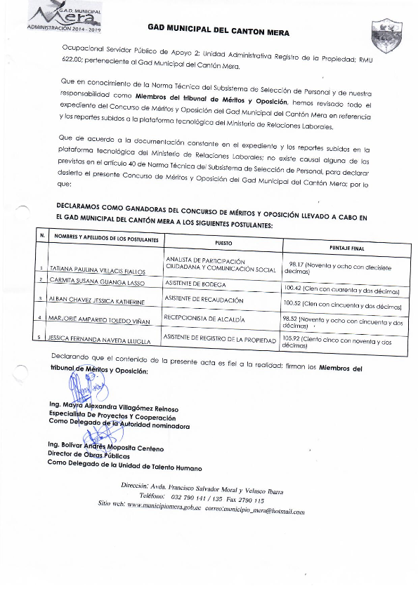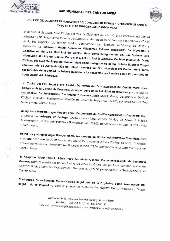 Gobierno Autónomo Descentralizado Municipal del Cantón Mera